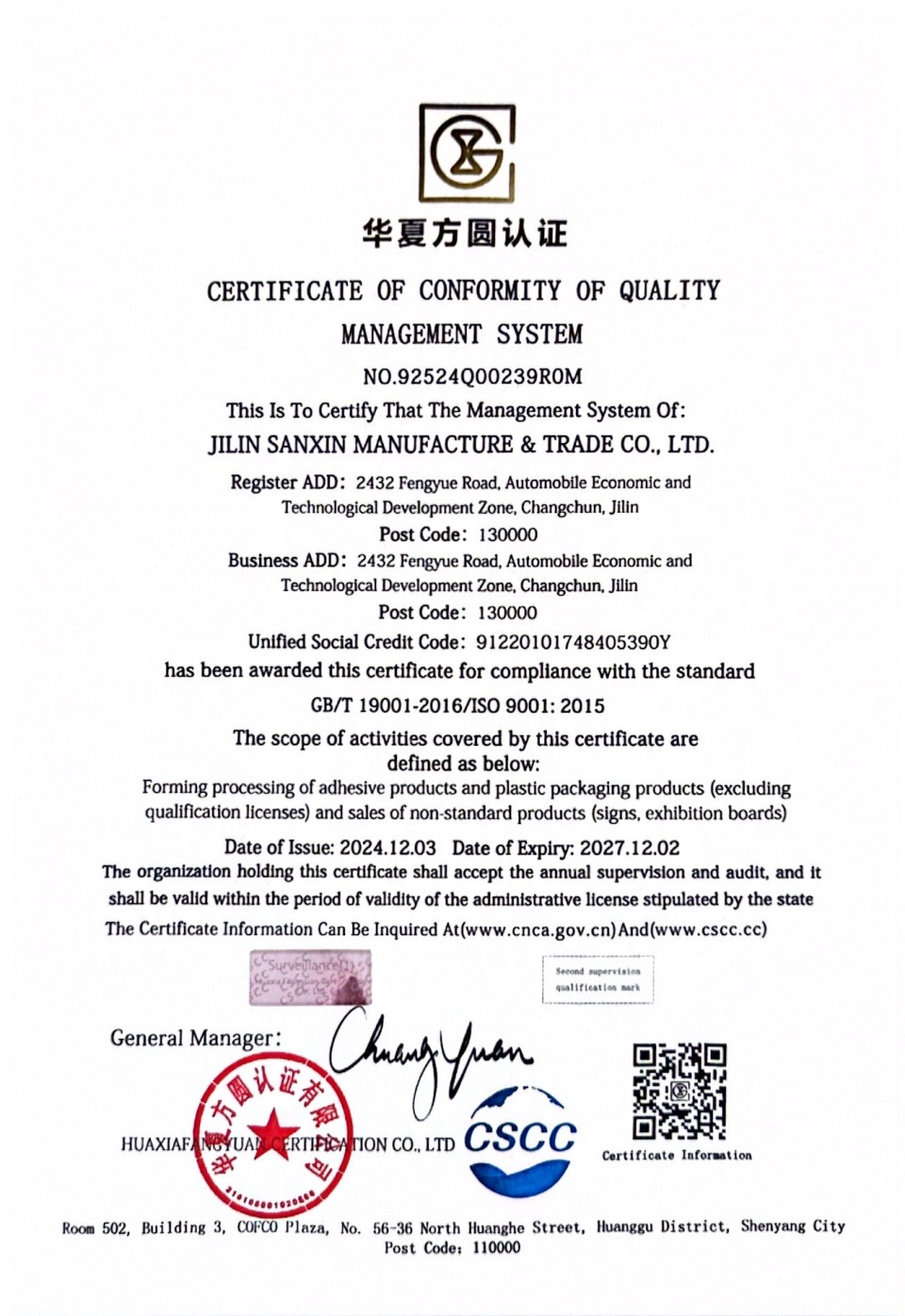 Jilin Sanxin Industrial and Trading Co., Ltd. הוקמה באפריל 2003, כשהמטה שלה ממוקם במספר 2432 Fengyue Road, Changchun Automobile Economic and Technological Zone. הוא משתרע על שטח של כ-23,481 מ"ר ובעל השקעה כוללת של 200 מיליון יואן. החברה הינה מפעל ישות מקיף המשלב מחקר ופיתוח, ייצור, מכירות ושירותים. לאחר יותר משני עשורים של פיתוח, היא הפכה לספקית פתרונות אריזה מובילה לתעשיית הרכב בצפון מזרח סין. החברה מעסיקה כיום קרוב ל-300 עובדים, כאשר טכנאי מחקר ופיתוח ואנשי ניהול בעלי תואר ראשון ומעלה מהווים 25%, מהווים צוות כישרונות מקצועי ויעיל. נכון לעכשיו, החברה השיגה פעולות מבוססות קבוצה והקימה בסיסי ייצור בטיאנג'ין, צ'ינגדאו, צ'נגדו, פושאן ובמקומות נוספים, המתהדרת במערך מחקר ופיתוח, ייצור ושירות מלא.
