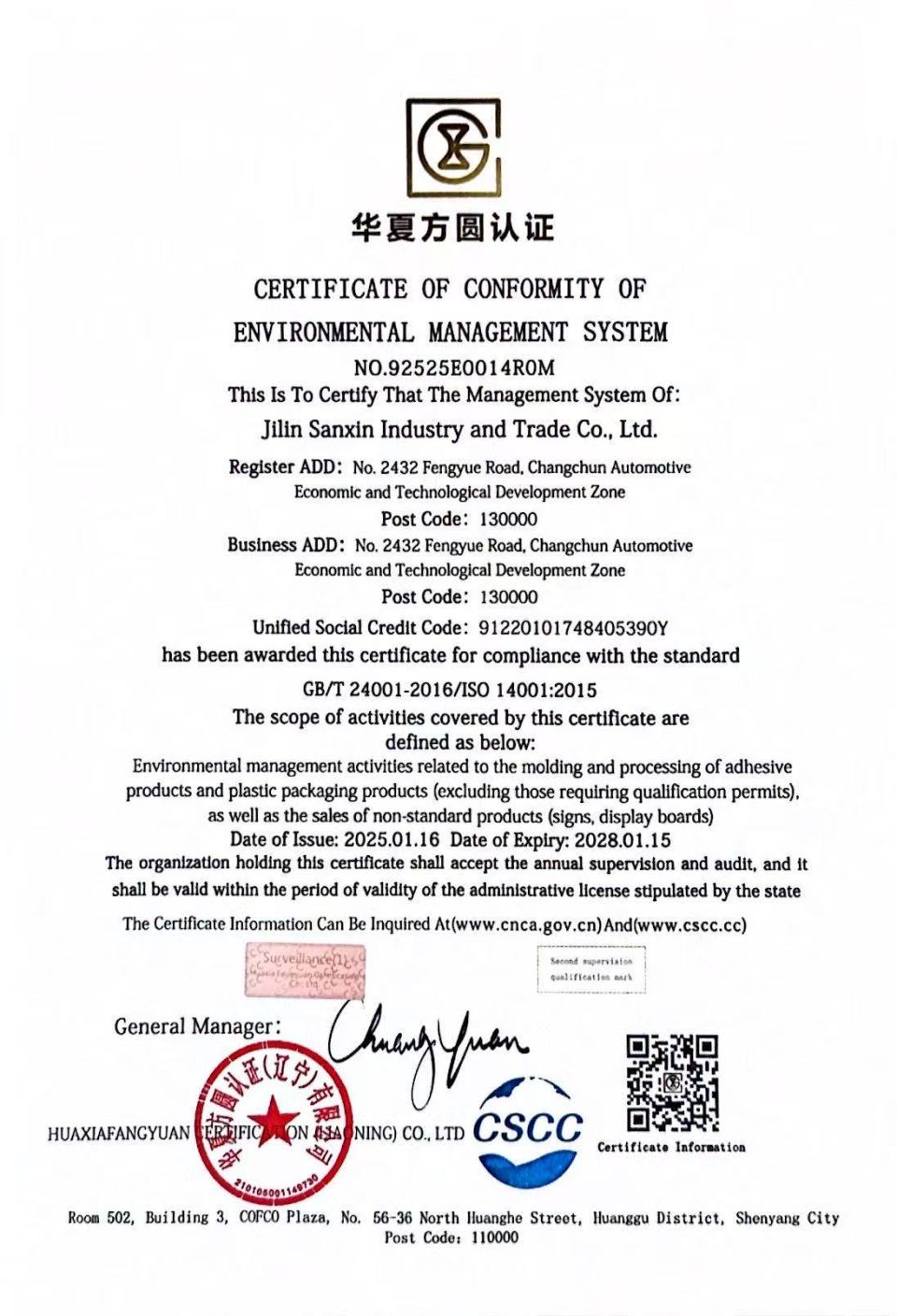 בעתיד, Jilin Sanxin Industrial and Trading תמשיך לקיים את הפילוסופיה הארגונית של "חדשנות טכנולוגית, איכות מעולה, הגנת הסביבה תחילה", תוך התחייבות לפיתוח של חומרי אריזה ירוקים הניתנים למחזור ומתכלה, לקדם פיתוח בר קיימא ולעבוד יד ביד עם לקוחות ליצירת שותפויות ארוכות טווח.